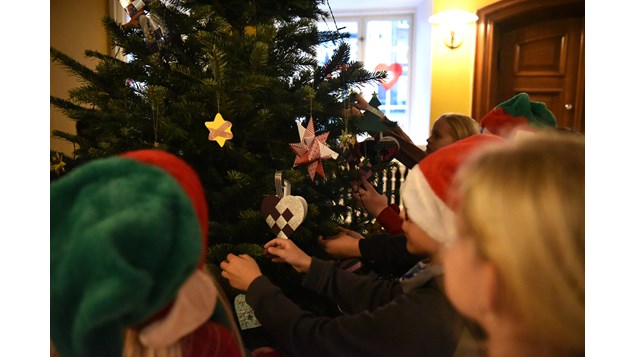 Det er første gang, at en skoleklasse har fået æren af at pynte juletræet på Det Gamle Rådhus, og eleverne er både stolte og beærede over opgaven.