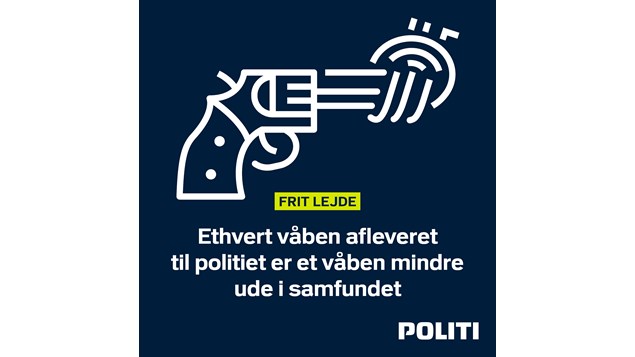 Fra 1. til 30. november 2024 giver politiet frit lejde til, at alle borgere kan aflevere skydevåben, knive, våbendele, ammunition, pebersprays, eksplosivstoffer og andre slags våben til politiet uden at risikere at blive straffet for at have købt eller besiddet genstandene.