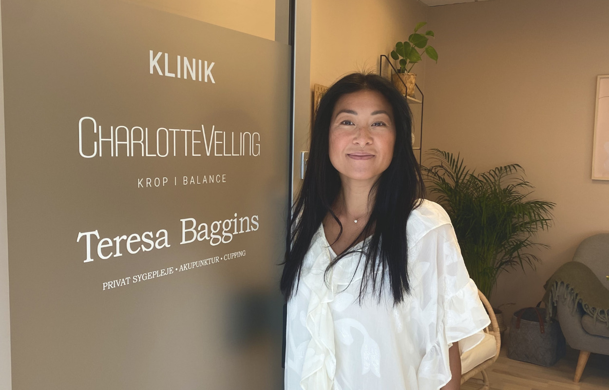 I efteråret 2022 kunne Teresa Baggins for første gang slå dørene op for sin klinik. I klinikken tilbyder hun privat sygepleje, cupping-massage og akupunktur.