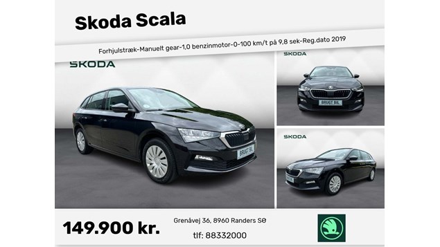 Vi giver gerne en prøvetur - så tøv ikke med at kigge forbi forretningen! Ellers kan du læse mere om Skoda Scala lige her https://www.skoda-randers.dk/Brugte-biler/Vis/?id=354-27706436
