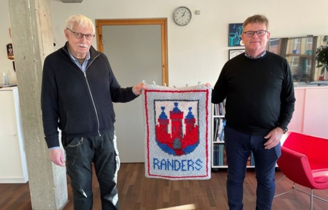 Vægtæppet med Randers Kommunes byvåben er skænket til borgmesteren af Steen Damgaard, der er bror til den afdøde kunstner.