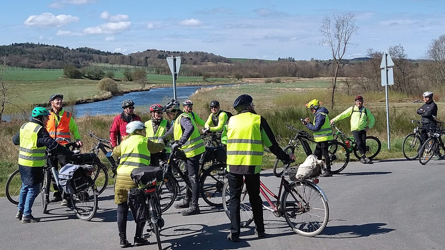 Søndag formiddag trillede 47 cyklister af sted fra Randers Regnskov med kurs mod Ulstrup, hvor der blev holdt spisepause ved Gudenåen på Dannebrogspladsen. Undervejs passerede man Væth, cyklede over Langås svar på Cykelslangen, fortsatte langs jernbanen og videre langs kanten af Vellev Mose.