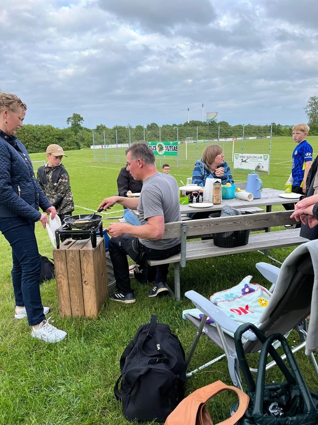 "Og så topper vores fantastiske forældregruppe lige turen op, ved at Silas’ mor og far efter kampen starter gasblusset op og laver hygge og pandekager til ALLE. En fantastisk idé, og der hygges til langt ud på aftenen. Det er bare det vores forældregruppe kan, og det giver så meget ekstra til holdet og drengene.”