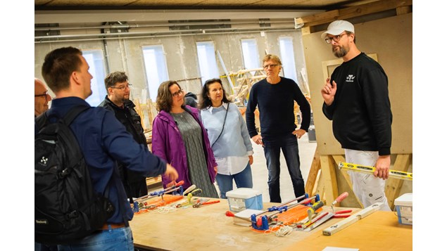 Opdelt i mindre grupper fik Michael Blom og Lene Pedersen sammen med kollegerne mulighed for at møde to fagafdelinger på Tradium for netop selv at opleve, hvordan de faglige og sociale læringsmiljøer ser ud på en erhvervsskole i dag.