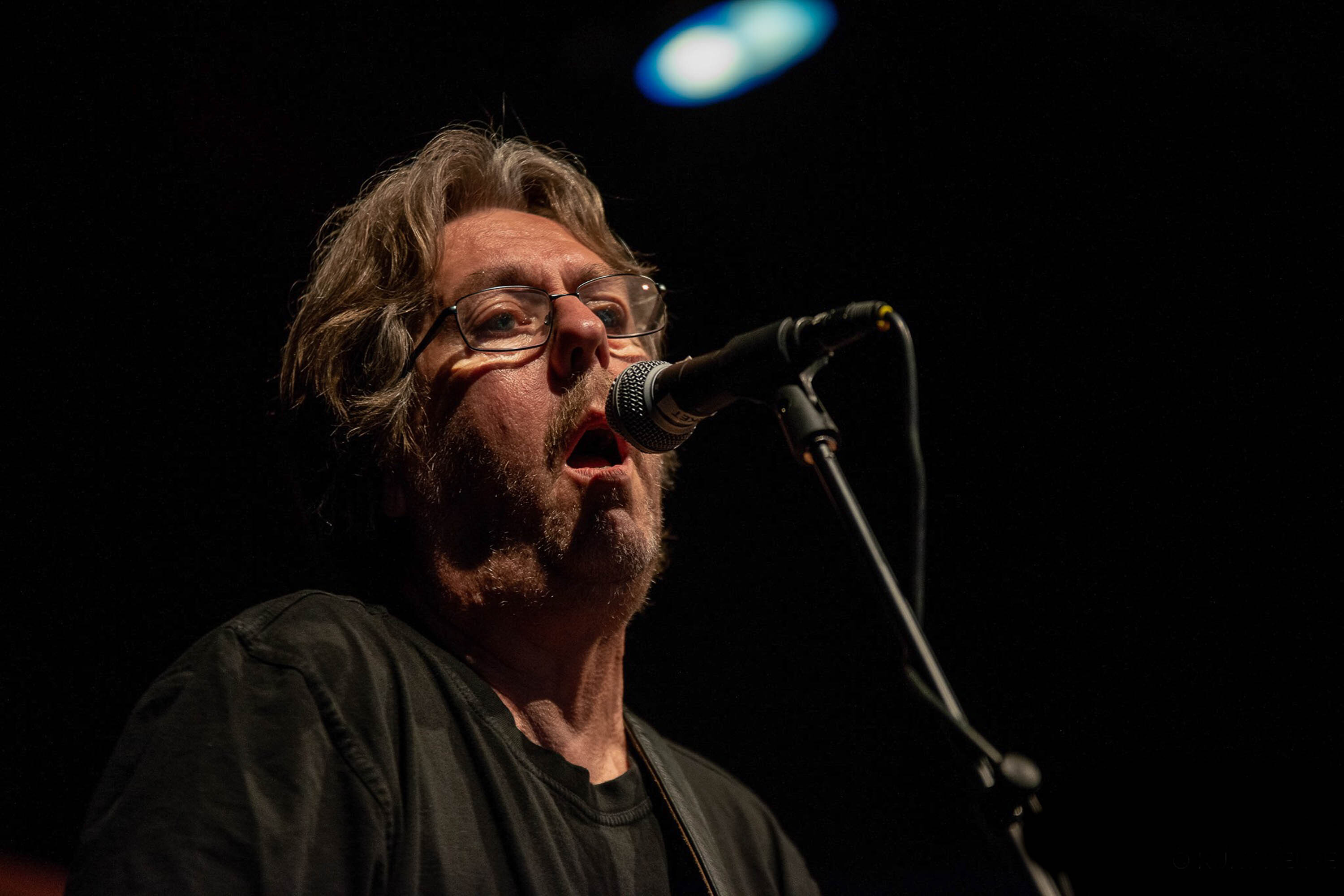I Randers står komponisten, sangeren og guitaristen Ole Frimer på scenen sammen med Niels Ole Thorning (keys), Claus Daugaard (trommer) og Jesper Bylling (bas).