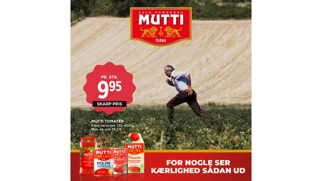 Går vejen til din udkårnes hjerte gennem maven? Så smag forskellen med Mutti tomater! Mutti-tomater dyrkes på åbne marker og modnes under den italienske sol. Kun de bedste tomater udvælges og lægges på dåse inden for 24 timer efter høsten for at bevare deres friske tomatsmag. Mutti har 125 års erfaring med tomater og ved, hvordan rigtig gode tomater skal smage.