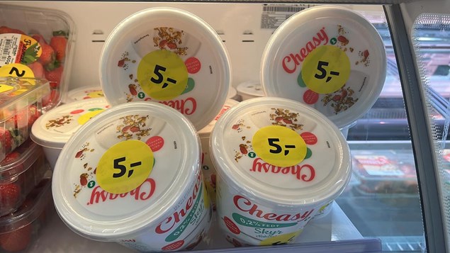 Hjælp din lokale købmand med at reducere madspild: Cheasy skyr til salg for kun 5 kr.
