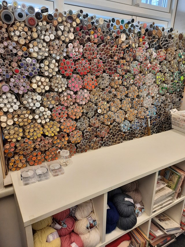 “Butikken startede som fugle- og hobbyforretning. Da min mand blev dårligere, stoppede vi med fugleafdelingen og fik broderi ind i stedet. På et tidspunkt blev broderimessen til salg og vi købte navnet, og varelageret,"
