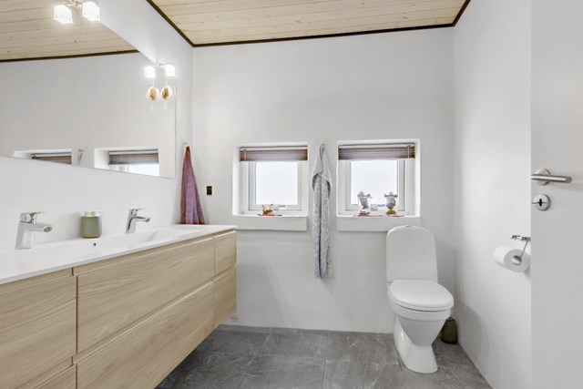 Udenfor finder i en stor og indbydende terrasse, hvor familien og vennerne kan samles til sommerstunder. Desuden er der en nem have, hvor der er plads til boldspil og leg.