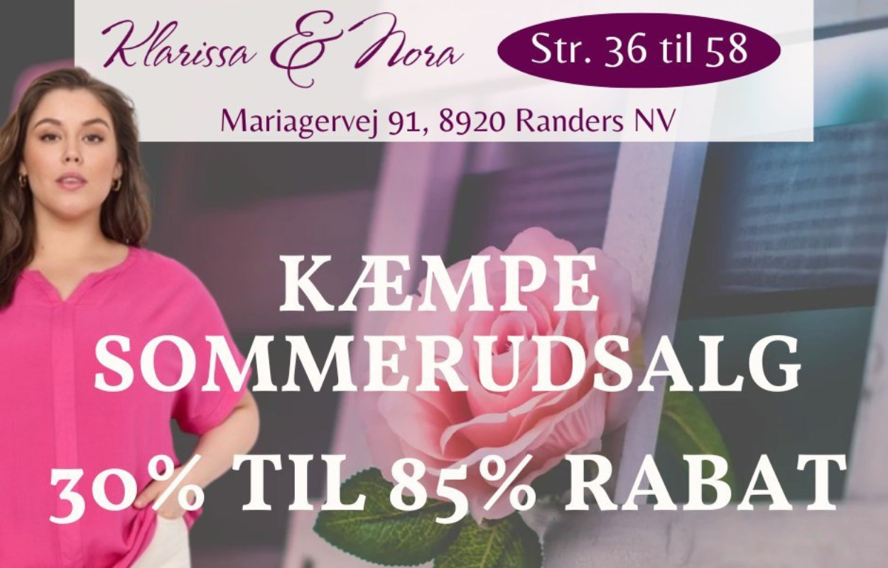 Hos Klarissa & Nora på Mariagervej 91 er der i øjeblikket et stort sommerudsalg med besparelser i massevis. Spar mellem 30 og 85 procent - også på nye varer.