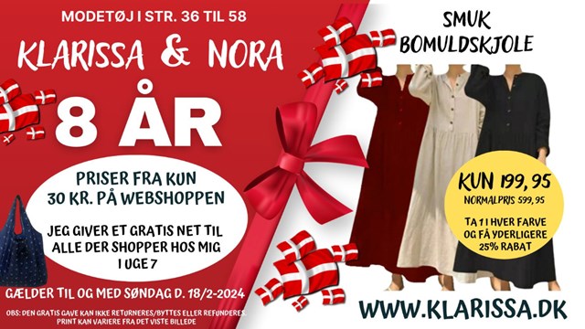 I hele uge 7 inviterer Klarissa & Nora alle til at fejre fødselsdagen sammen med dem. Ved hvert køb i butikken i løbet af denne uge får kunderne et gratis net med – som både er en praktisk gave, der tilmed er miljøvenlig.