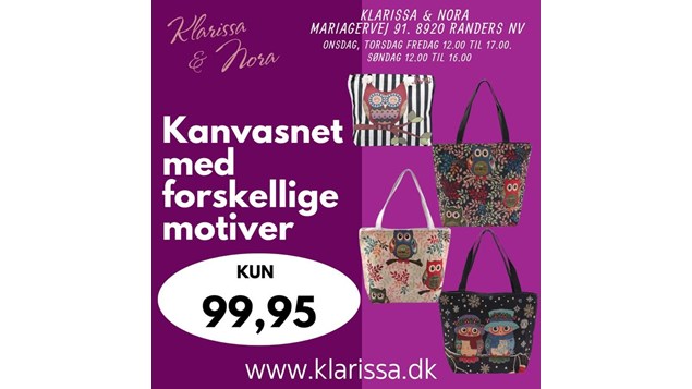 Flotte shopper net i kanvas med uglemotiv. De er ikke til at stå for.