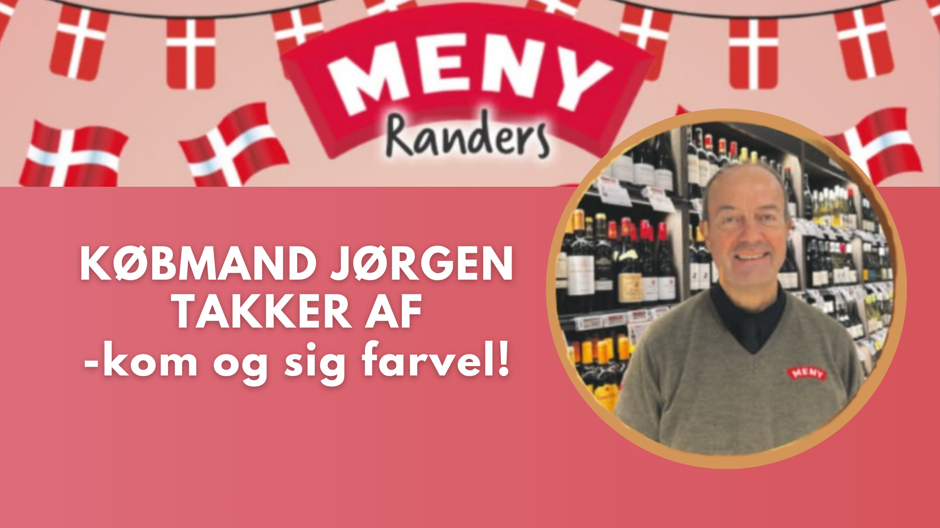 Købmand Jørgen runder mange gode år i MENY Randers af og går på pension. Fredag den 17/10 er hans sidste arbejdsdag, og butikken inviterer alle til at kigge forbi, sige pænt farvel og fejre det med ekstra skarpe éndags-tilbud.