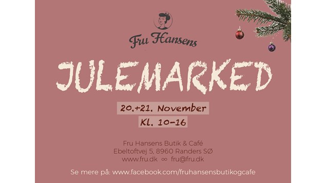 Vi glæder os til igen at kunne holde vores meget hyggelige og inspirerende julemarked med mere end 25 boder med lokalt kunsthåndværk fordelt rundt om i butikken og idet tidl. galleri og i det store værksted bagved. Her er bl.a. keramik i flere forskellige boder, juledekorationer, adventskranse, patchwork, lokalt syet børnetøj, strik og håndspundet garn i mange farver, filt figurer - hatte, futter, vanter, pileflet, demo af bivoks wraps, billeder, smykker, glaskunst, træ-kunst, sæber og cremer og meget mere.