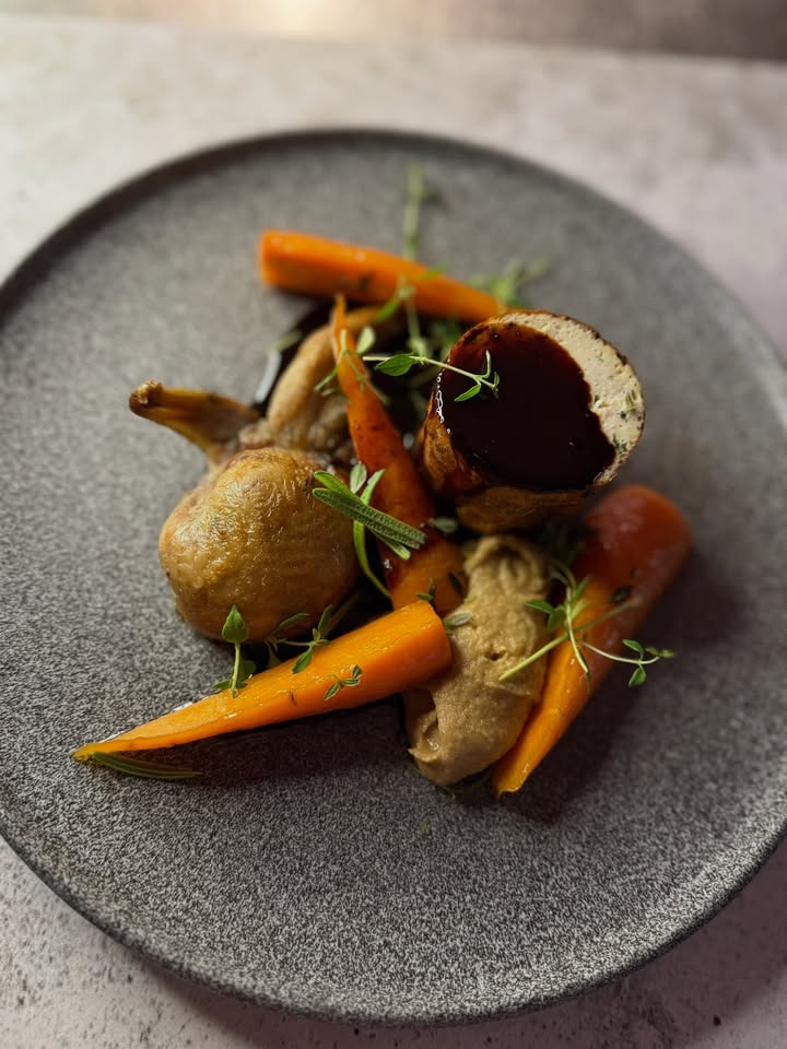 Svampefarseret vagtel og kyllingeballotine