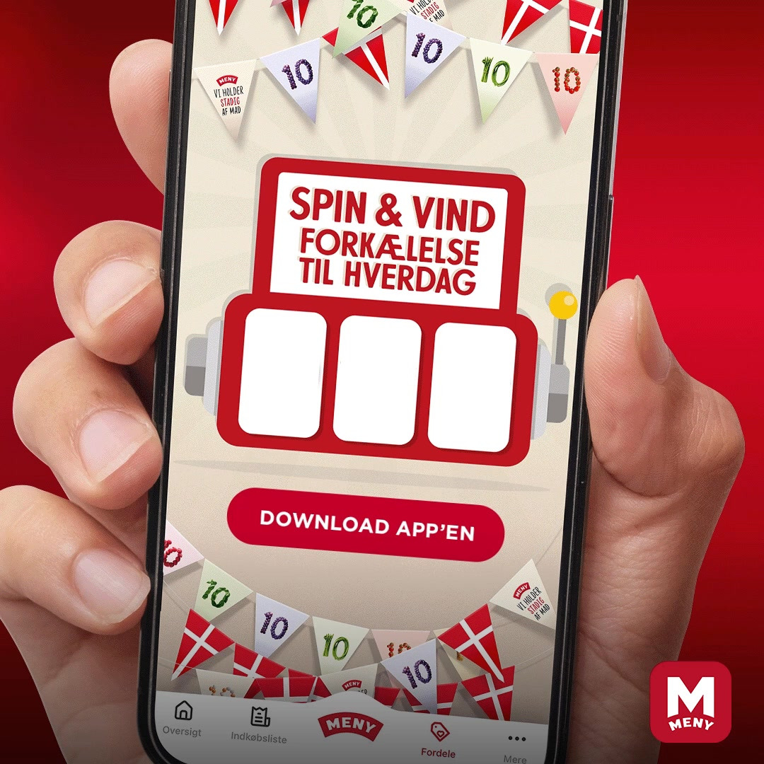 Du kan spille med én gang om dagen i perioden 1.-29. maj 2025. Deltagelse kræver, at du har downloadet MENY-appen, oprettet en bruger med aktivt betalingskort og givet samtykke til, at MENY må sende markedsføring til dig.