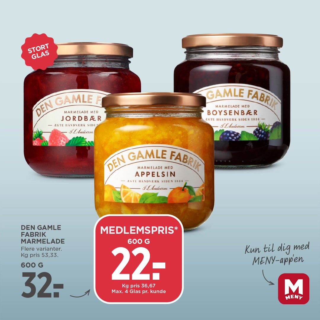 .. og derfor kan du i denne uge dyppe dine æbleskiver i marmelade fra Den Gamle Fabrik til medlemspris! Du behøver ikke at spare på det - du får nemlig et stort glas med 600 gram til 22 kr.