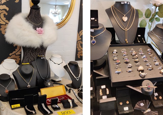Ved Helga Winther kan man få flotte vintage smykker, i både guld og sølv (Foto: Privat)