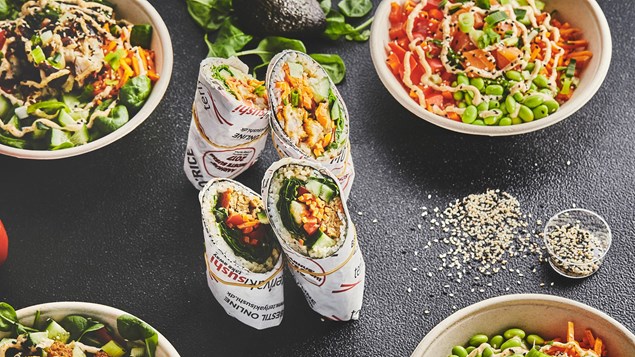 MO'RICE disker op med to valgmuligheder: friske pokebowls med sprøde grøntsager eller en sushiburrito. "Vi glæder os til at tage del i en hyggelig dag fyldt med spænding og fart," fortæller teamet bag MO'RICE.