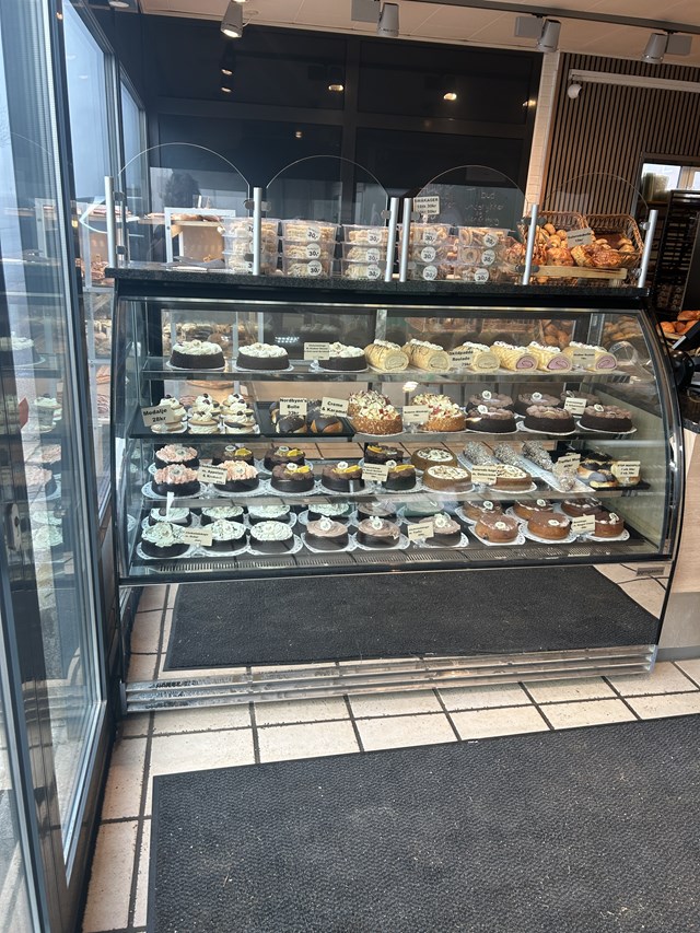 Til påske er der blandt andet en citronkage med chokolade og flamberet marengs, og snart kommer der også påskeboller i sortimentet.