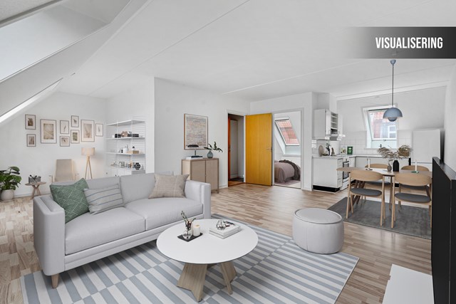 - Plads til hyggeligt tv-hjørne, spiseområde og kontorhjørne
