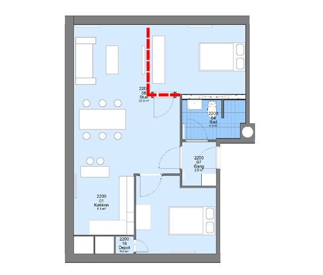 Du har mulighed for at få opsat en ekstra væg, hvis du har behov for et ekstra værelse. Dette kan opsættes, inden du flytter ind.