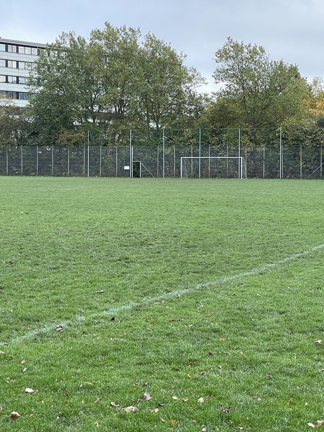 Det var bestemt ikke den bedste fodboldbane, der lagde græs til kampen mellem Aarhus 1900 og Vorup FB (Foto: K. Bargisen)