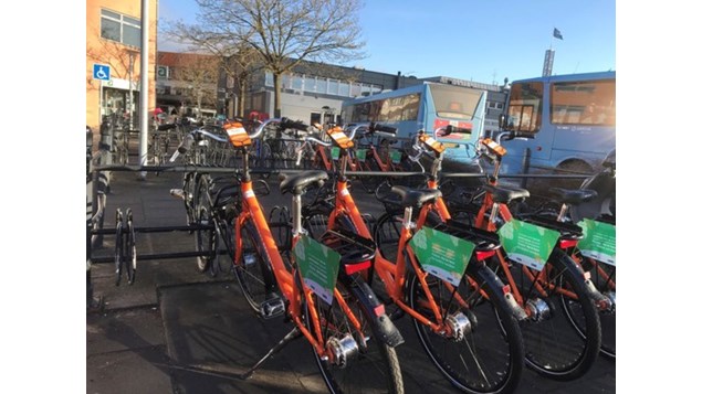 De nye bycykler står rundt omkring i Randers, så de er lette at gå til og placere igen, når man er færdig med at bruge cyklen.