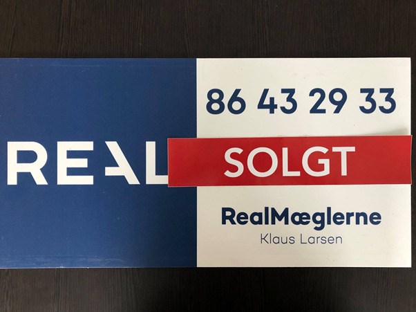 Foto: Et SOLGT-skilt fra Realmæglerne Randers