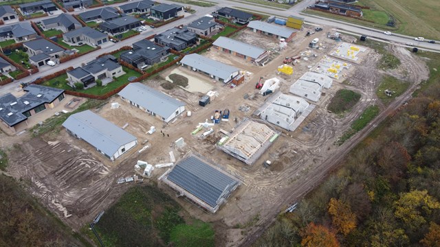 Assentoft – Fredag den 14. november blev der fejret rejsegilde på de 27 nye almene rækkehuse på Skovvangsvej i Assentoft, hvor håndværkere, samarbejdspartnere og repræsentanter fra Randers Boligforening af 1940 samledes for at markere, at byggeriet nu rejser sig.
