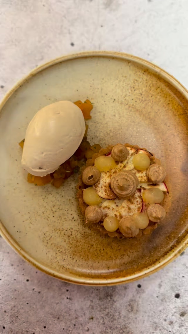 Æble i flere teksturer, hasselnøddeis med dybde og et strejf af sød nougat