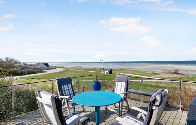 "Det er ikke ofte man får lov at opleve et fritidshus, som har så fantastisk en beliggenhed som denne. Her får man et fritidshus, som er så tæt på havet, at du nærmest kan dufte det. Samtidig kan du stå med morgenkaffen i hånden i husets stue og derfra kigge ud over havet, hvor sælerne hygger sig i strandkanten."