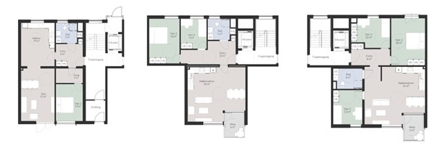 Foto: Eksempler på plantegninger på Chr. Hauns Allé 4, 6 og 8