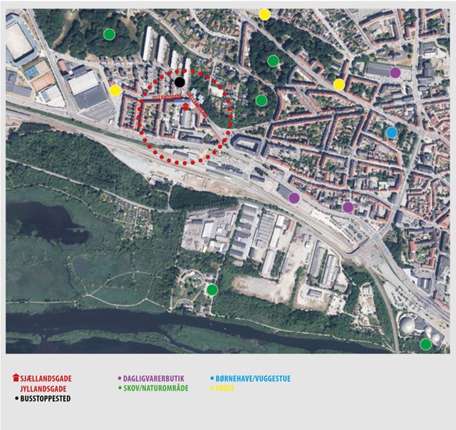 Foto: Kort over området - boligerne ligger også tæt på togstationen i Randers