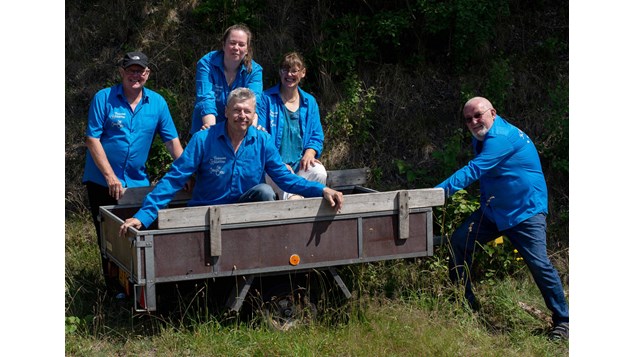 På billedet: Kaj (til højre) og Stjernerne læsser i januar årets gave på traileren og leverer den til Specialbørnehaven Lucernevej