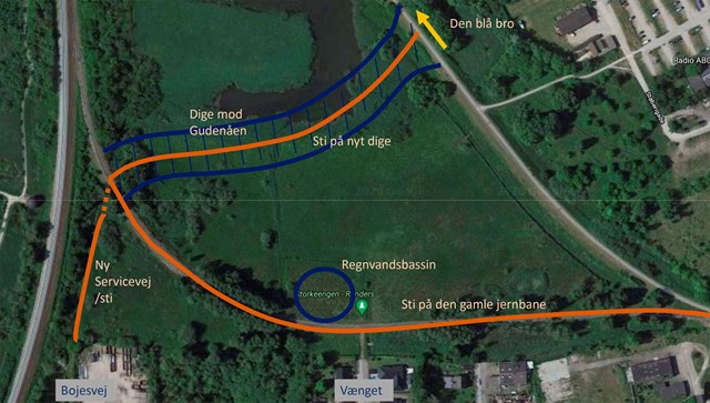 Arbejdet med at klimasikre Vorup rykker tættere på boligerne. Nye stisystemer, ny servicevej, anlæg af nyt regnvandsbassin og oprensning af grøfter i engen gør, at veje som Vænget og Bojesvej bliver adgangsveje for arbejdskørsel ud i engen.