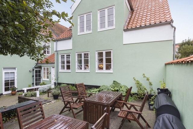 På mange måder, så skriger dette byhus egoistbolig, men derfor kan du jo godt dele med en anden. Gør du det, så vil I begge elske den helt fantastiske gårdhaveterrasse, I får og som I deler med de tre øvrige beboere i ejerforeningen. Denne er i niveauer, overraskende rolig og ugeneret og desuden meget læfyldt.