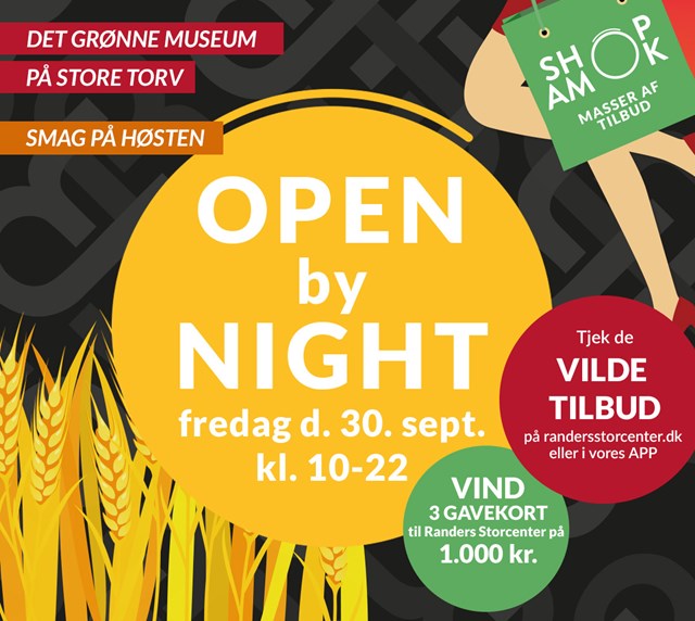 Fredag den 30. september kl. 10-22 holder Randers Storcenter Open by Night med høstfest som tema. Spændende aktører som blandt andre Det Grønne Museum, Randers Bryghus og Kim Hass, kommer på besøg i centeret.