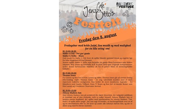 Eftermiddagene i Randers bliver fyldt med musik, når den unge musiker Thomas Jones går på scenen i Café Jens Ottos festtelt. Fredag 8. august hylder han nogle af de største rockikoner som Queen, Volbeat, Guns N' Roses, Bon Jovi, og danske navne som Kim Larsen og Creedence Clearwater Revival.